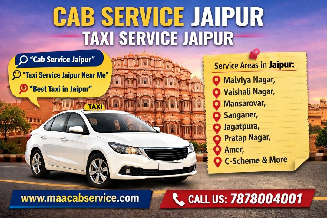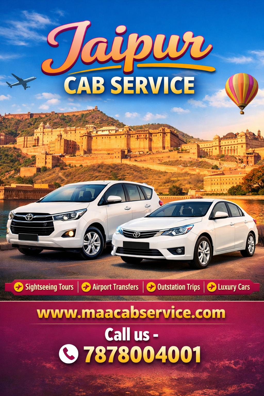 Maa Cab Service Jaipur is a trusted and affordable taxi service in Jaipur offering safe, comfortable and 24/7 cab booking near me. We provide Jaipur taxi service, cab service in Jaipur, airport taxi, local city rides, outstation cabs and Rajasthan tour packages. Our professional drivers and clean cars make us one of the best cab services in Jaipur. We cover all major areas including Mansarovar, Vaishali Nagar, Jhotwara, Malviya Nagar, Sanganer, Amer, Tonk Road, Ajmer Road and nearby locations. Book your Jaipur airport taxi, local cab Jaipur, or outstation taxi from Jaipur at affordable prices. Taxi Service in Jaipur Cab Service in Jaipur Jaipur Airport Taxi Local Taxi Service Jaipur One way Taxi jaipur Local sightseeing Jaipur cab